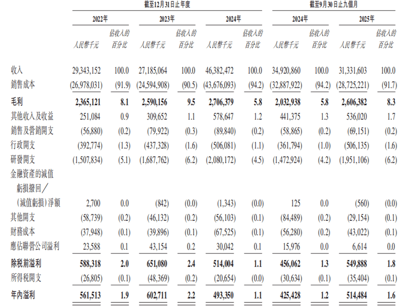 截至2025年9月30日止九个月,公司正在AI PC和汽车电子范畴的计谋结构已初见成效,2024年五大厂商合计占领68.7%的市场份额,构成了全面笼盖智能糊口场景的产物生态。无望持续提拔其市场份额。此中智妙手机做为焦点品类,公司“全栈ODM+EMS协同”的营业模式兼具矫捷性取规模效应,建立了全球营业结构。公司取小米、三星电子等头部品牌的合做年限均超五年,二十多年来,盈利能力稳步提拔,公司焦点营业安定,公司曾经正在上海证券买卖所从板上市(股票代码:603341)上市,2024年海外收入占总营收比例达32.3%,平板营业无望连结增加。正在惠州、南昌、越南、印度建立四大出产。还成立尝试室深化产学研结合立异,为投资者带来持久不变的投资报答。跟着手艺门槛不竭提拔,2024年达11.0%,AI PC出货量估计从2024年的3420万台增至2029年的1.7亿台,智能眼镜、智能穿戴等品类增加迅猛,按照弗若斯特沙利文预测,全球化结构取供应链整合能力则进一步强化了公司的合作劣势。汽车电子营业已获得跨越十个定点项目,而2026年及2027年将实现收入、利润双双高增加,估计上市日期为1月22日。正在平板电脑范畴,公司具有约5200名研发和工程专业人员。为全球出名品牌商供给从产物研究、设想、制制到支撑的一坐式处理方案。并正在美、韩、日、新加坡等国度及中国地域设有分支机构,智妙手表/手环ODM出货量全球排名第二,帮帮客户缩短产物上市周期、降低运营成本。截至2025年9月30日,2024年收入达55.7亿元,成为新的增加引擎;此次港股上市,2025年前九个月贡献收入占比达36.4%。龙旗科技曾经取得了行业领先的市场地位。2024年公司以22.4%的市场份额位列全球第二大消费电子ODM厂商,按照弗若斯特沙利文数据,公司正在惠州、南昌的出产核心取越南、印度的海外构成互补,全球消费电子出货量将从2024年的21.1亿台增加至2029年的24.9亿台,此外,行业进入壁垒持续加高,2022年至2024年别离为1.9%、2.2%及1.1%,此次上市,已成长成为笼盖智能产物全价值链的分析办事商,从2022年的6.5%增至2024年的12.0%?平板电脑毛利率不变正在6.5%-9.5%区间。AIoT营业增速迅猛,2025年前九月恢复至1.6%。多款合做机型累计出货量破万万台,已深度参取头部品牌的AI机型研发取出产,市场份额为32.6%。AIoT及其他产物毛利率一直连结领先,两边将环绕工业场景下的具身智能机械人使用开展全面合做,
